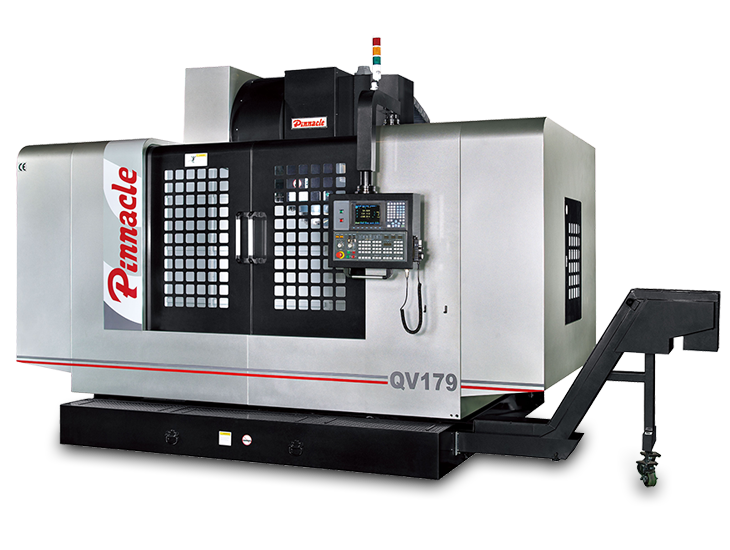 Maszyny (Centrum obróbcze PINNACLE QV209 - prowadnice ślizgowe (4 szt. w osi Y) serii QV są 3-osiowymi pionowymi centrami obróbczymi ze stołem krzyżowymi, realizującym ruchy w osi X/Y oraz wrzeciennikiem realizującym ruch pionowy w osi Z. Prowadnice ślizgowe we wszystkich osiach zapewniają wysoką sztywność, umożliwiając przeprowadzenie ciężkiej obróbki. W celu zapewnienia jeszcze większej sztywności oraz obciążenia stołu maszyny QV wyposażone są w 4 prowadnice w osi Y. Pionowe centra obróbcze serii QV mogą zostać wyposażone w stół obrotowy CNC, stając się 4-ro lub nawet 5-cio osiowymi maszynami.