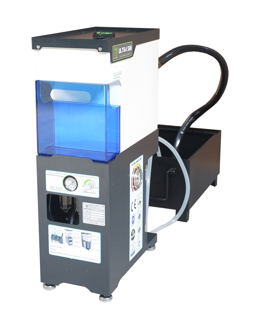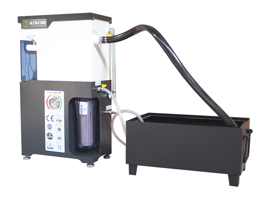System oczyszczania chłodziwa GREEN ECO PRO ULTRA 360 to innowacyjne rozwiązanie utrzymujące chłodziwo na stałym poziomie. Zapobiega gromadzeniu się oleju na powierzchni chłodziwa, co powoduje rozwój szkodliwych bakterii beztlenowych. Neutralizuje nieprzyjemne zapachy, utrzymuje pH na stabilnym poziomie. Dzięki zastosowaniu systemu ULTRA 360 wydłużamy żywotność chłodziwa 5-cio krotnie, co pozwala zmniejszyć koszty związane z recyklingiem zużytego chłodziwa. Jednocześnie ograniczamy zużycie narzędzi do obróbki i co najważniejsze nie narażamy pracowników na kontakt z bakteriami.