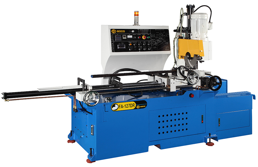 Przecinarki tarczowe służą do przecinania rur i profili oraz materiałów pełnych. Przecinarka tarczowa SOCO FA111DR to maszyna automatyczna z możliwością cięcia tylko pod kątem prostym. Maszyna te możę być wyposażona w podawanie hydrauliczne bądź za pomocą serwomotoru. Seria maszyn NC-SN jest przeznaczona do tych odbiorców którzy liczą koszty materiału. Dzięki opatentowanemu układowi zaciskowo-podającemu zminimalizowano odpad do 20 mm. Jest to światowy patent firmy SOCO.