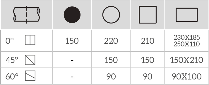 • cięcie pod kątem: W prawo 0° - 45° - 60°