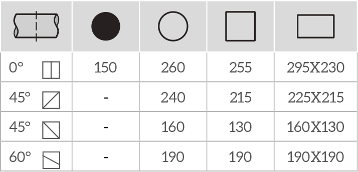 • Cięcie pod kątem: w prawo 0° - 45° - 60°; w lewo - 45°