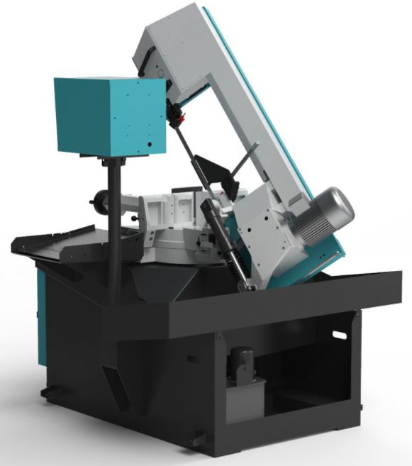 Przecinarka półautomatyczna taśmowa IMET BS 350 SHI z wbudowanym agregatem  hydraulicznym odpowiedzialnym za opuszczanie i podnoszenie ramienia, pracę imadła a także posiadająca regulacją prędkości skrawania (płynna regulacja – falownik – w opcji za dopłatą). Maszyna umożliwia cięcie pod kątem do 60° w prawo i 45° w lewo  oraz regulację prędkości posuwu ramienia. Przecinarka jest optymalnym rozwiązaniem dla cięcia zarówno materiałów pełnych jak i kształtowników np. w produkcji konstrukcji stalowych.