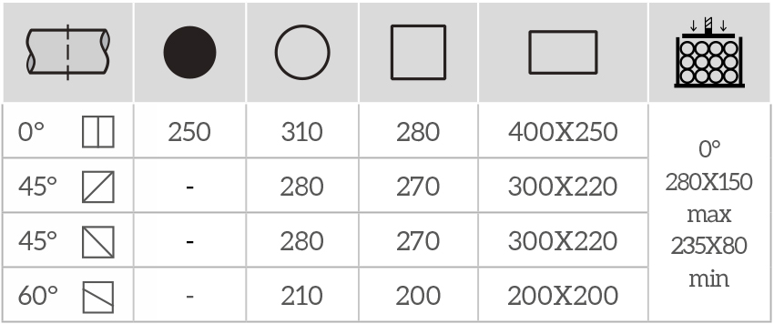- Cięcie pod kątem: w prawo 0° - 45° - 60°; w lewo - 45°