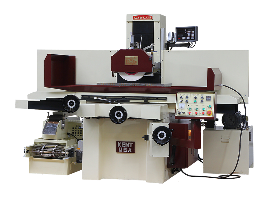 Automatyczna szlifierka do płaszczyzn KGS 1632 AHS produkowana jest przez znaną od lat na rynku firmę KAITE. Napęd dla osi Y / Z silnik serwo Siemens sterowany przez PLC Siemens, podziałka posuwu poprzecznego 0,01mm, podziałka posuwu auto (Z - w dół) 0,002, dla osi Y śruba kulowa produkcji chińskiej, a dla osi Z - śruba trapezowa. Charakteryzuje się nowoczesną i stabilną konstrukcją. Korpusy główne wykonane zostały jako precyzyjne odlewy żeliwne. Dzięki temu konstrukcja jest odpowiednio ciężka i sztywna, oraz tłumi drgania. Szlifierka posiada bardzo bogate wyposażenie standardowe. Przesuw wzdłużny stołu realizowany jest hydraulicznie, z płynną regulacją prędkości.