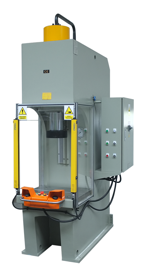 Szybkobieżne hydrauliczne prasy przemysłowe EUROMET serii PH sterowane są za pomocą dwuręcznego pulpitu, umiejscowionego z przodu maszyny. Istnieje możliwość pracy w trybie automatycznym lub manualnym. Nacisk jest regulowany za pomocą pokrętła.