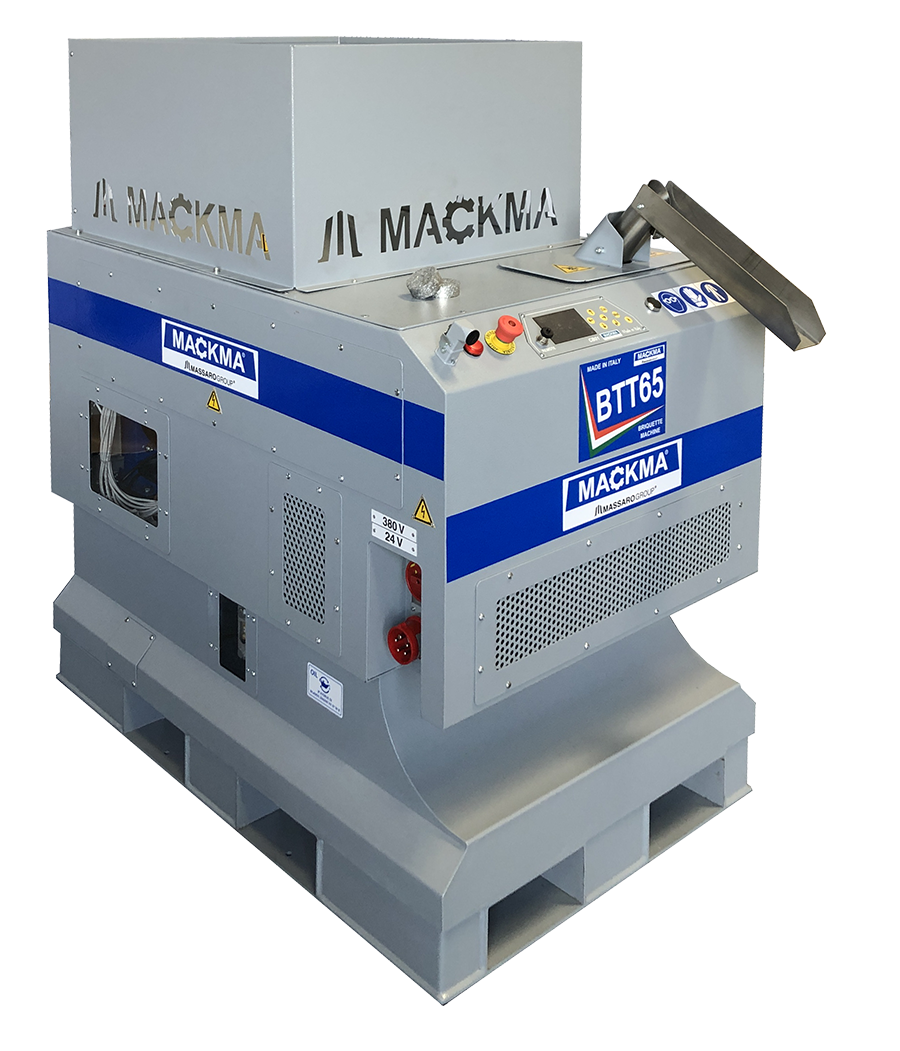 Brykieciarka MACKMA BTT50 (maszyna do zagęszczania wiórów metalowych) pozwala na uzyskanie dużych oszczędności związanych z przechowywaniem i utylizuje odpady metalowych. Wstępnie oczyszcza z oleju po obróbce metali.