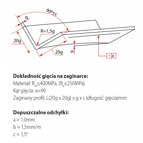 "Z uwagi na różne właściwości plastyczne materiałów oraz ich zachowanie podczas gięcia, szczególnie przy długich, wąskich i cienkich paskach materiału, sugerujemy rozważenie zakupu prasy krawędziowej wyposażonej w kompensację ugięcia materiału w celu uzyskania lepszej jakości gięcia."