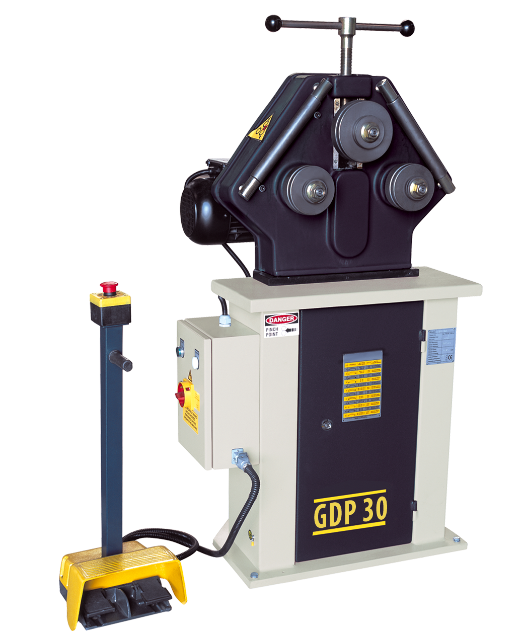 Zwijarka do profili MACKMA RB30M z dwiema napędzanymi rolkami, umożliwiająca wykonanie gięć i zwijanie łuków o dużych promieniach rur i profili, nadająca się do wszelkiego rodzaju warsztatów. Górna rolka jest ustawiana ręcznie co sprawia że obsługa maszyny jest bardzo prosta.