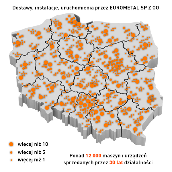 Eurometal Sp. z o.o. od 33 lat współtworzy rynek obrabiarek do metalu, świadczy to o jakości sprzedawanych maszyn oraz standardów obsługi serwisowej. Przez ten okres zaufało nam blisko 6700 klientów i dostawców maszyn. Przez ten okres dostarczyliśmy ponad 12 500 obrabiarek.